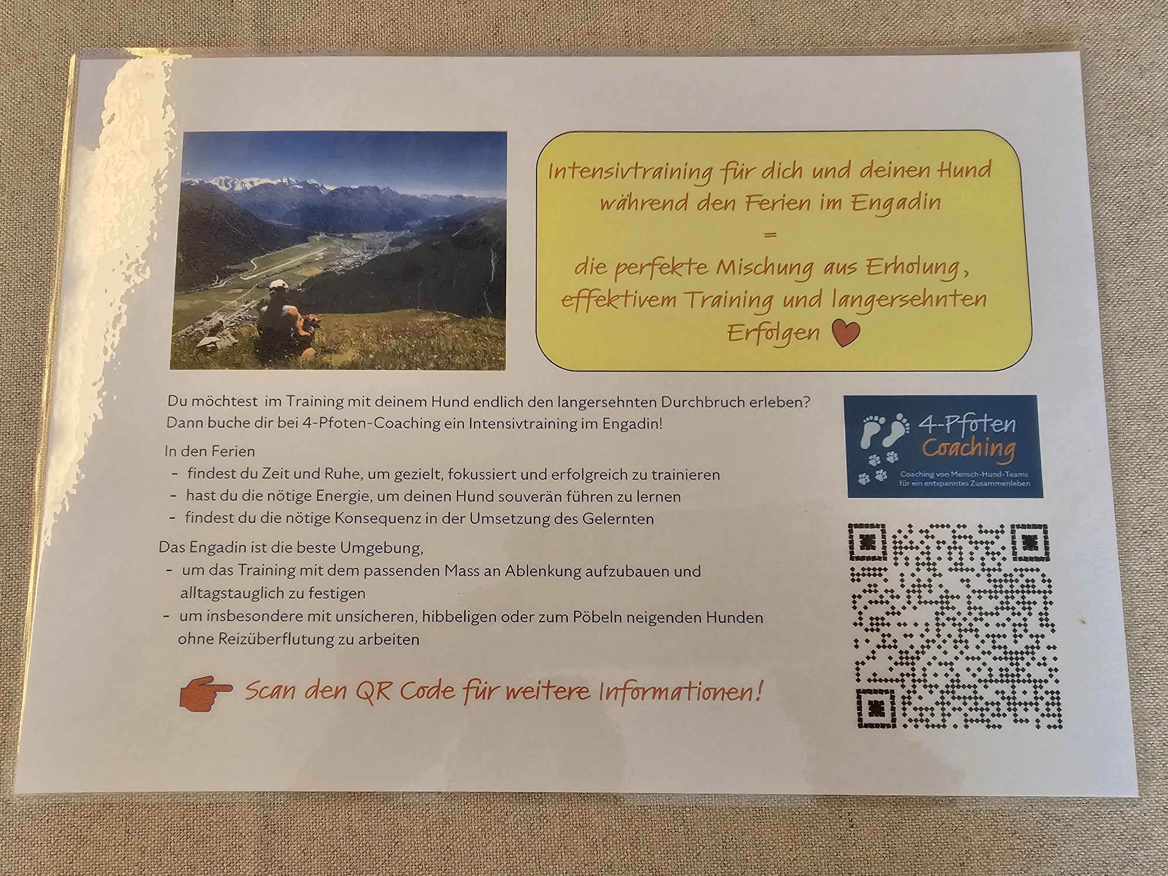 From 2 nights, our guests receive the mountain railway ticket for all mountain railways in the Upper Engadine free of charge. Dogs are free of charge on cable cars.