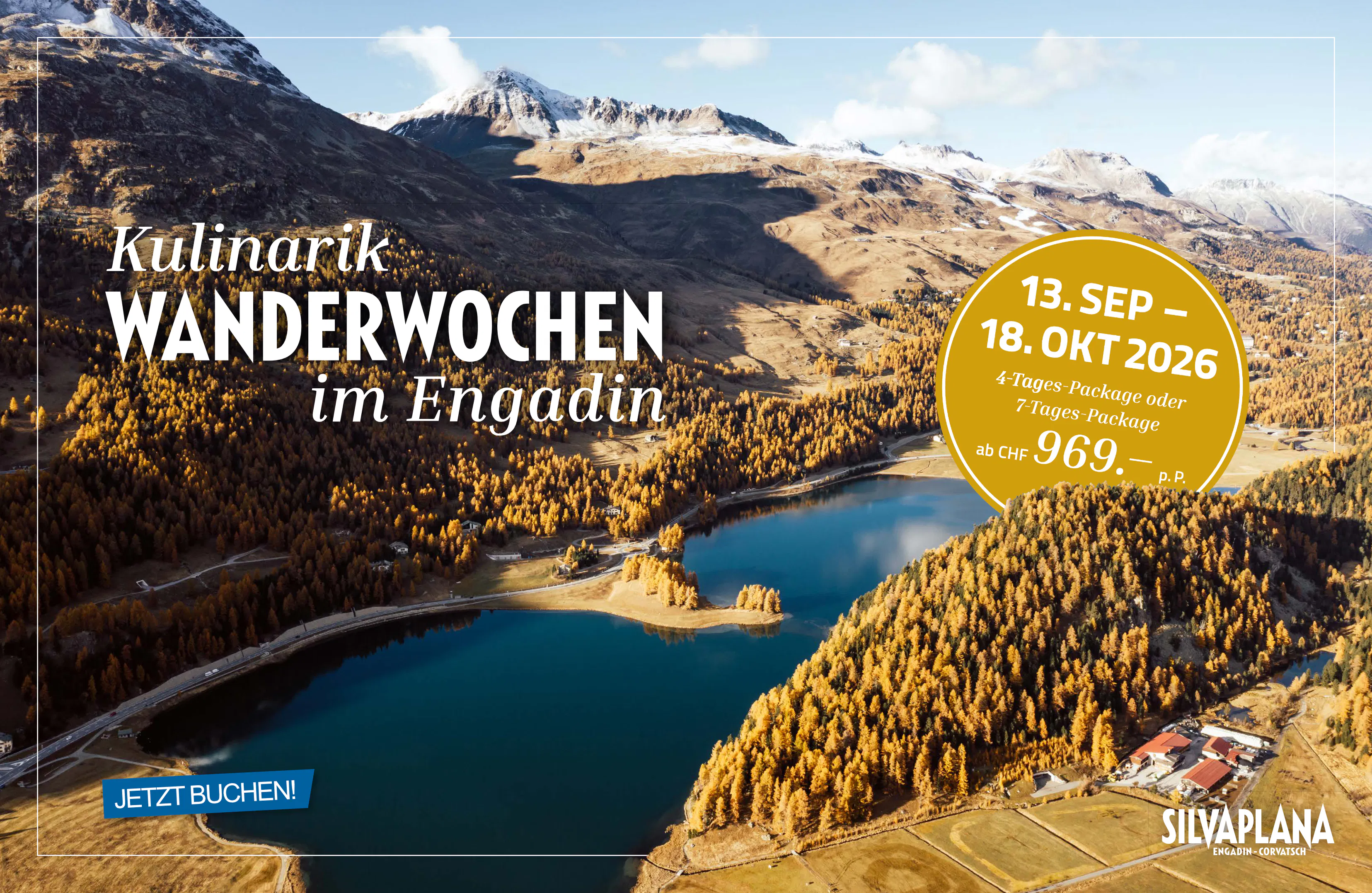 Quando i larici dell'Engadina si rivestono di oro splendente, i laghi brillano di un blu intenso e le cime delle montagne indossano già il loro primo manto bianco, inizia una delle stagioni più suggestive: l'"estate indiana". In questa atmosfera speciale, la settimana escursionistica culinaria di Silvaplana invita a combinare armoniosamente natura, esercizio fisico e sapori regionali.