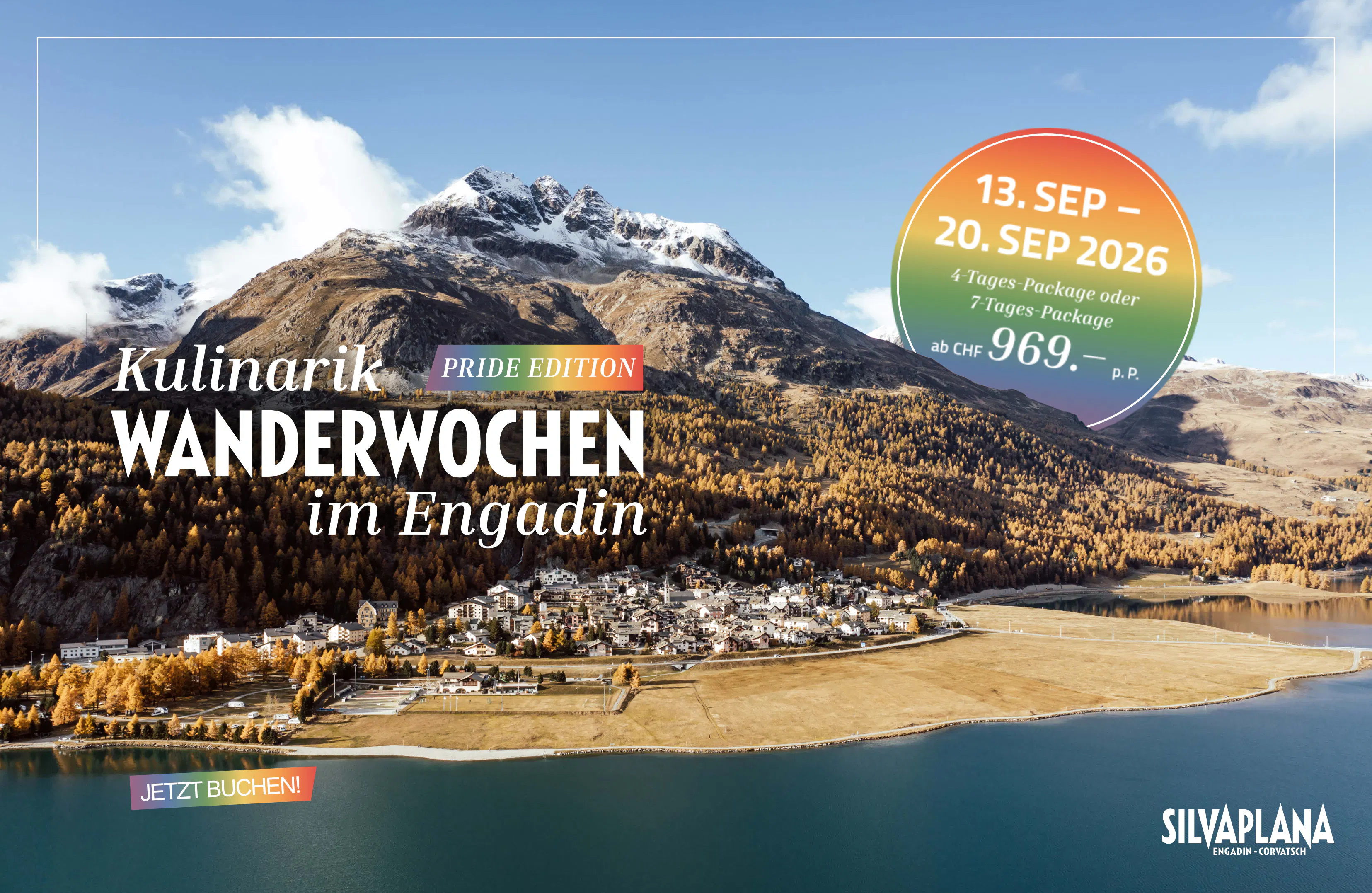 Benvenuti alla prima Settimana escursionistica culinaria Pride in Engadina: una pausa molto speciale in Alta Engadina, dove potrete vivere appieno la natura, il divertimento e la comunità. In una delle regioni più belle della Svizzera, vi aspettano escursioni variegate, specialità culinarie e un'atmosfera aperta e amichevole, il tutto all'insegna della diversità.